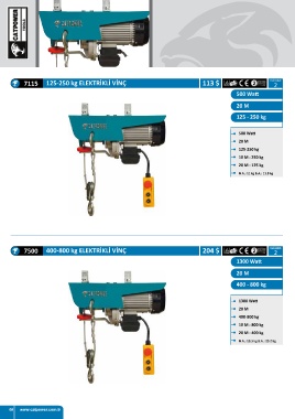 7115 125-250 KG ELEKTRİKLİ VİNÇ 107 $ Koli Adet oli Adet
