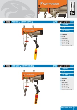 7550 400-800 kg ELEKTRİKLİ VİNÇ 158 $ Koli Adet oli Adet