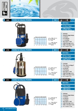 670 TEMİZ SU DALGIÇ POMPA 85 $ K Koli Adet oli Adet