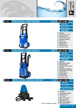 710 YÜKSEK BASINÇLI YIKAMA MAKİNASI 215 $ K Koli Adet oli Adet